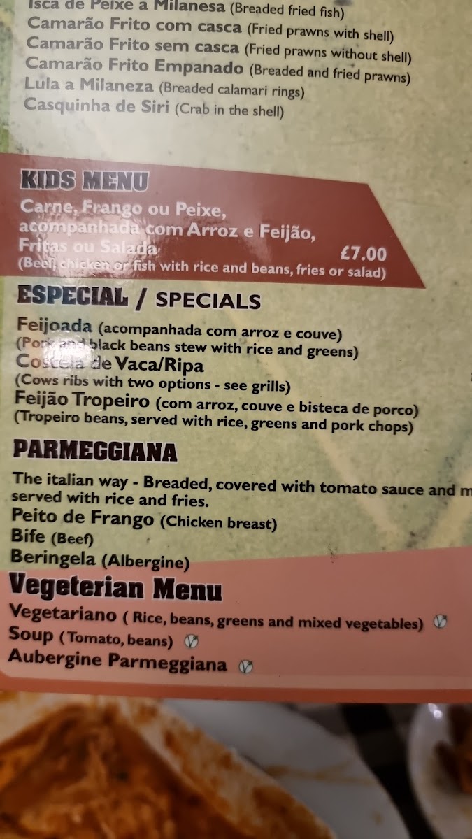 Start with small plates like Bolinho de Bacalhau or Cheese Bread, ideal for leisurely gatherings or as a satisfying introduction to the meal. The menu also includes heartier options such as Churrasco Misto and Moqueca Mista Peixe e Camarão, which invite a slower, more unhurried dining experience, matching the warm, intimate atmosphere of the restaurant.