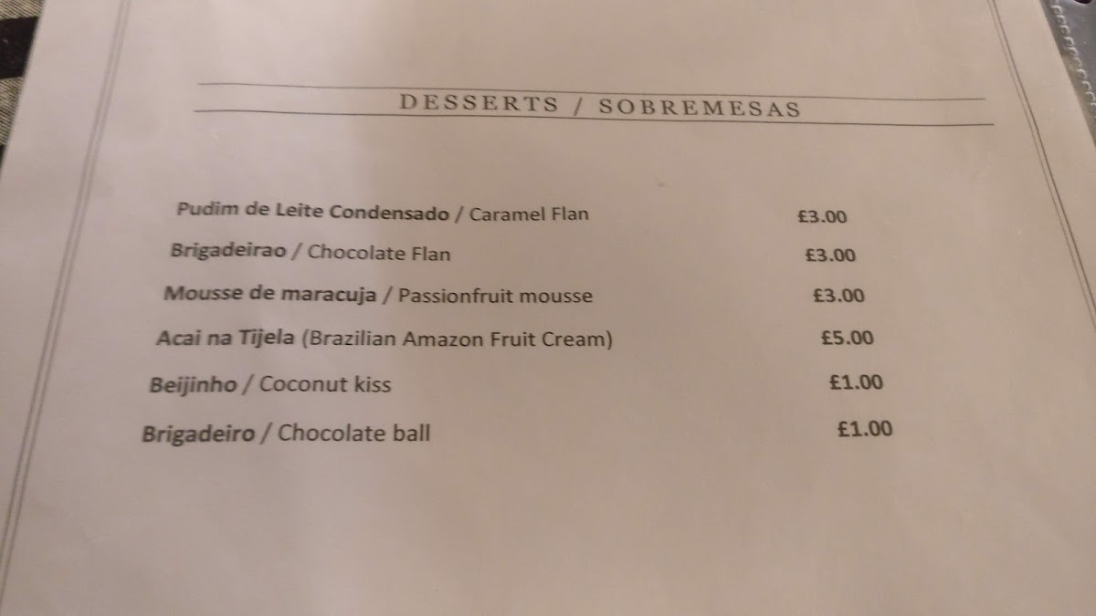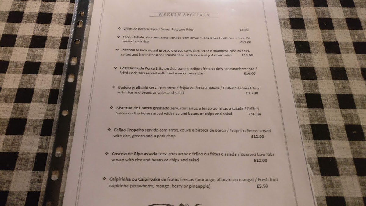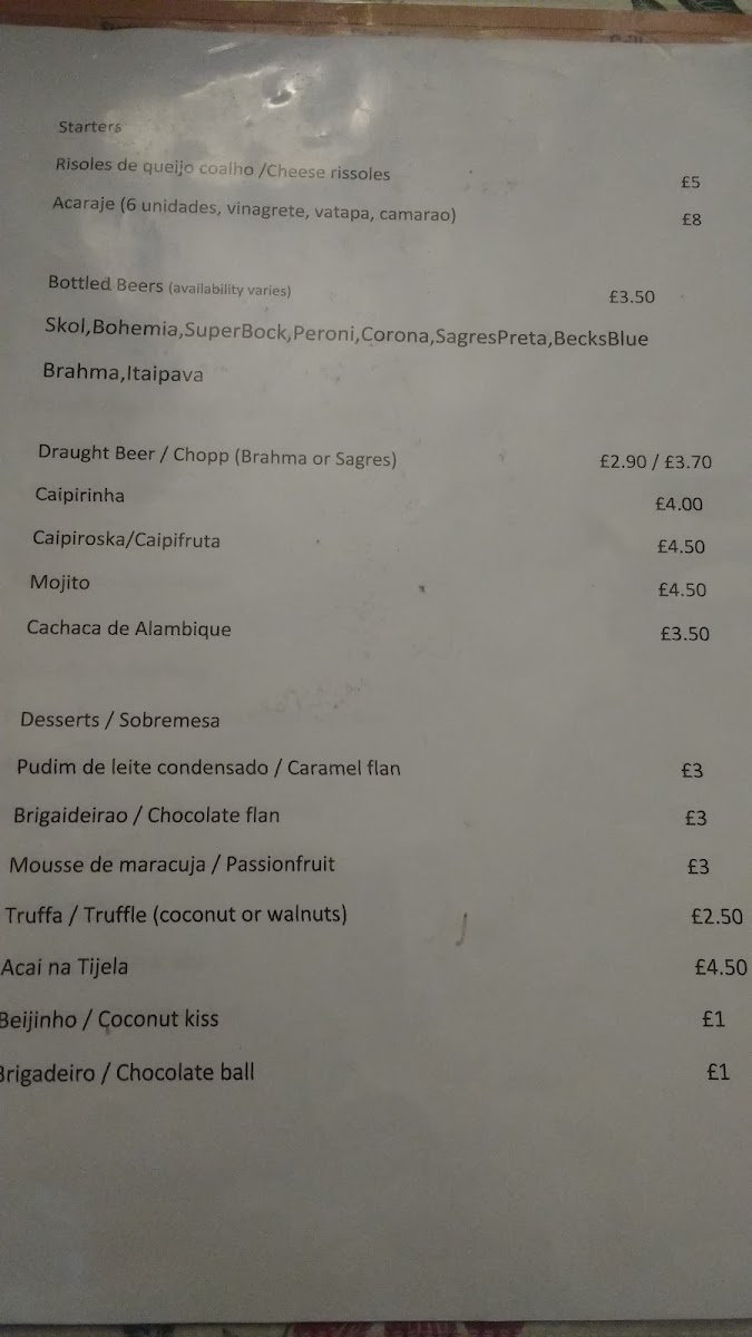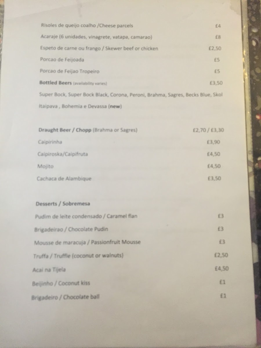 Drinks like the classic Caipirinha and Cerveja Malzbier complement the food well, offering refreshing and authentic accompaniments that enhance the overall enjoyment of the menu.